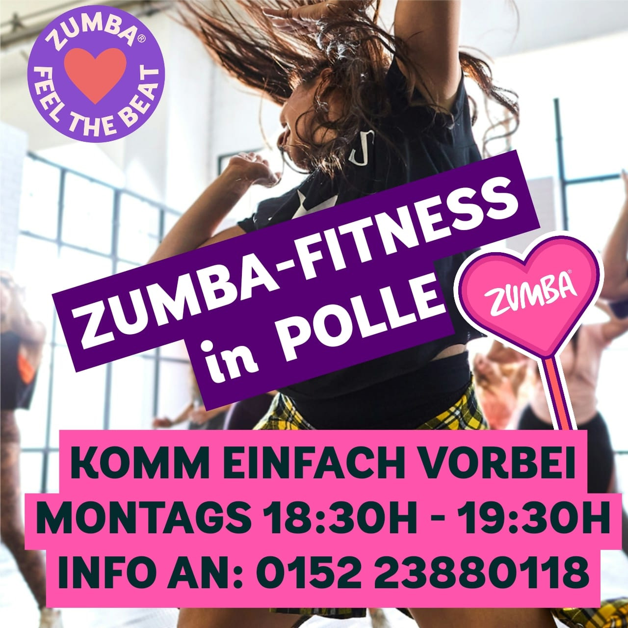 Immer montags von 18.30 bis 19.30 Uhr verwandelt sich die Sporthalle Polle in einen Ort voller Beats und mitreißender Choreografien. Zumba verbindet Tanz und Fitness zu einem effektiven Ganzkörpertraining. Dabei werden Ausdauer, Koordination und Muskulatur gestärkt, zugleich kann Stress abgebaut werden.