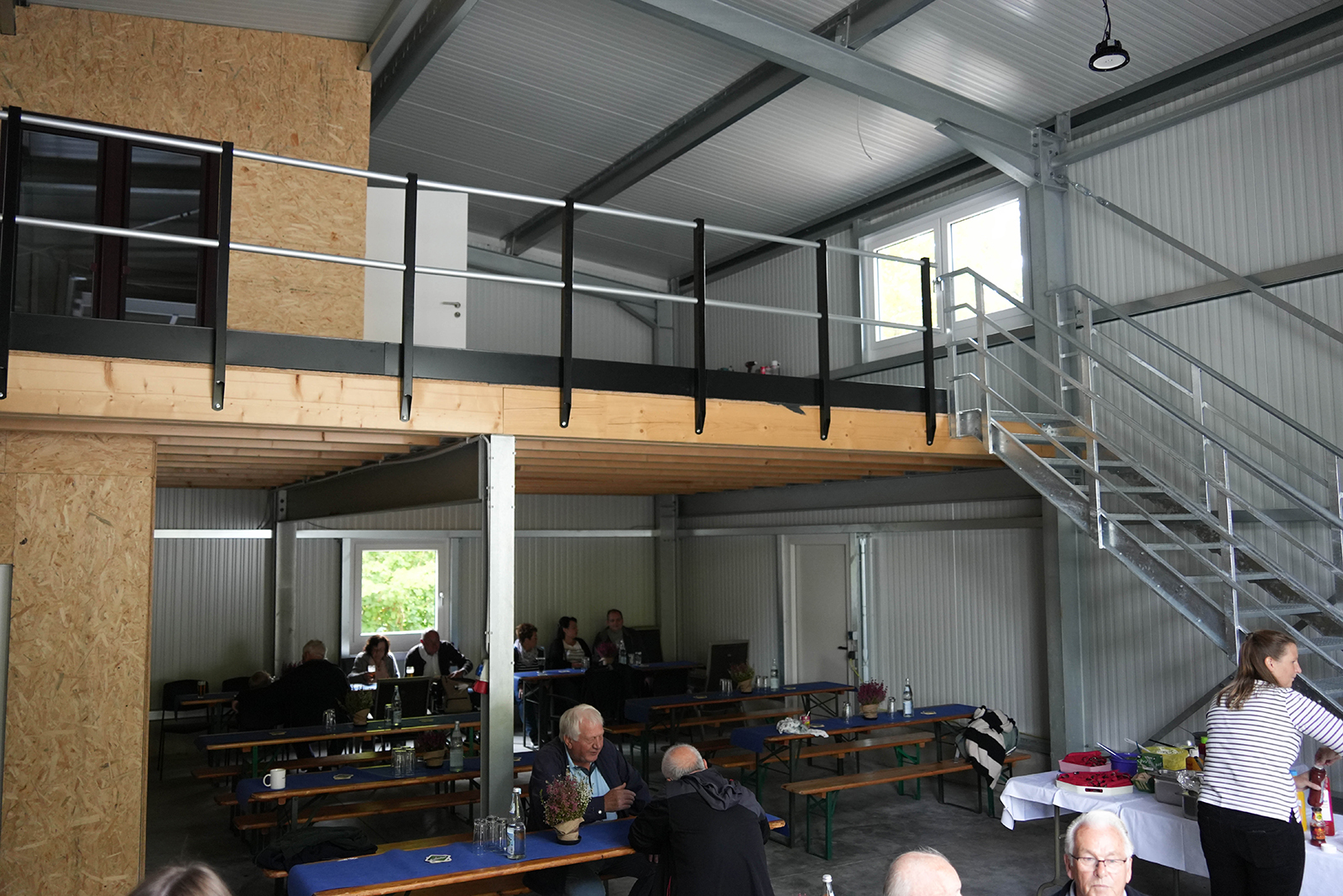 Merxhausen (zir). Anthrazit mit blauen Rahmen, chic und modern. Fährt man durch Merxhausen, fällt einem die neue Halle sofort auf. Sie gehört zur Bergmeier & Bock GmbH, einem Meisterbetrieb für Heizung, Klima, Sanitär & Solar und wurde am Tag der deutschen Einheit eingeweiht. Bei spätsommerlichen Temperaturen und dem Duft von Leckereien des Schaustellerbetriebes Krummackers, konnten nach und nach Familie, Freunde, Mitarbeiter sowie Nachbarn begrüßt werden. „Es ist schön, dass heute so viele von euch gekommen sind, um diesen Tag mit uns zu feiern“ freut sich Inhaber Christopher Bock.