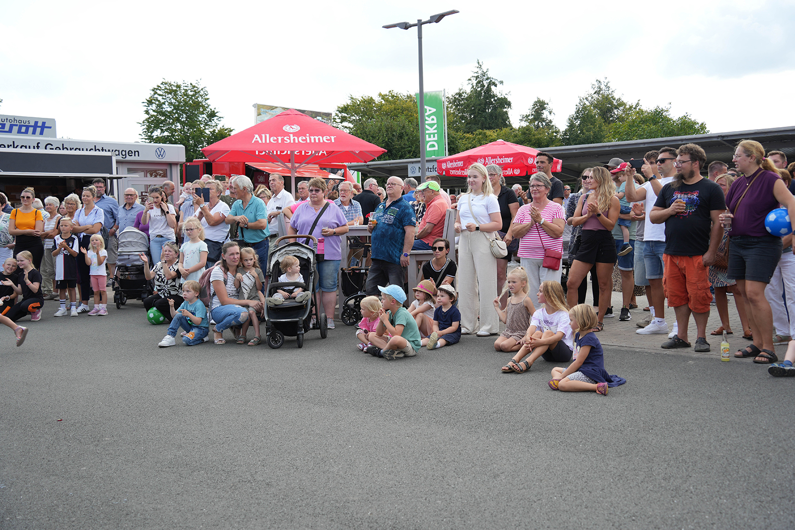 Bei strahlendem Sonnenschein verwandelte sich die Verkaufsfläche in ein kleines Volksfest, das mit seiner Vielfalt sowohl für Kunden, Freunde als auch Interessierte viel zu bieten hatte. Bereits bei der Parkplatzsuche weckte der Anblick des Besucheransturms Neugier. Auf dem VW-Gelände zeichneten sich die ersten Attraktionen des Jubiläumsfests ab: Eine riesige, bunte Hüpfburg wurde von zahlreichen kleinen Besuchern eifrig erobert. Wer es etwas ruhiger angehen wollte, konnte sein Glück am Glücksrad versuchen und tolle Sachpreise gewinnen. Nur wenige Schritte entfernt waren Fahr- und Bowlingkünste der Besucher gefragt: Beim „Autobowling“ nahmen Teilnehmer in einem VW T-Roc Platz, der an der Front mit Kissen gepolstert war. Mit diesem Fahrzeug galt es, einen ballonartigen Ball gegen Kegel zu stoßen und dabei einen „Strike“ zu erzielen.