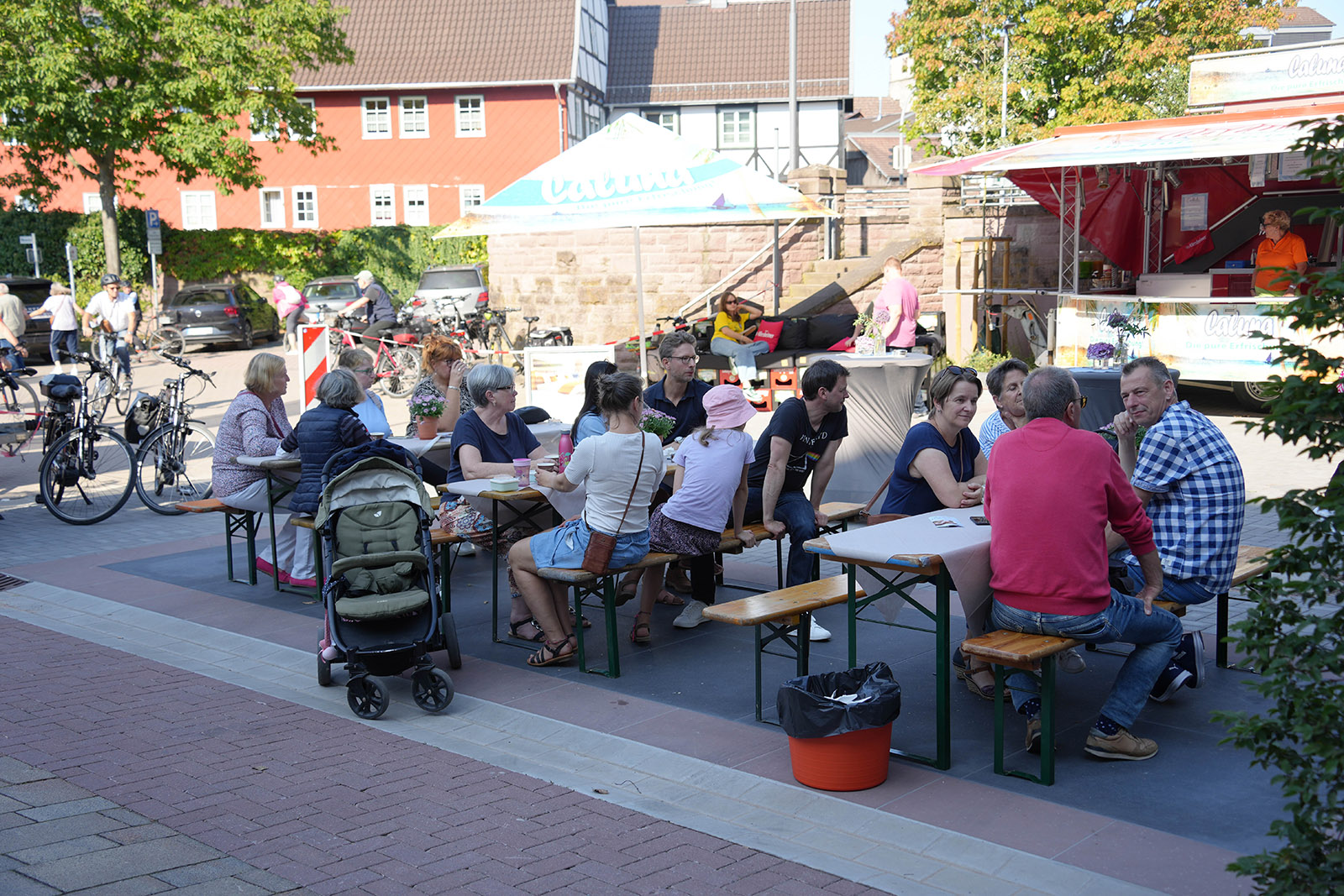 Neben den Besichtigungen konnten die Gäste im Vorhof kulinarische Köstlichkeiten genießen oder sich frisch gemixte Cocktails schmecken lassen. Für die jüngeren Besucher gab es Glitzertattoos sowie die Möglichkeit, ihr Geschick beim Dosenwerfen oder anderen Geschicklichkeitsspielen zu testen.