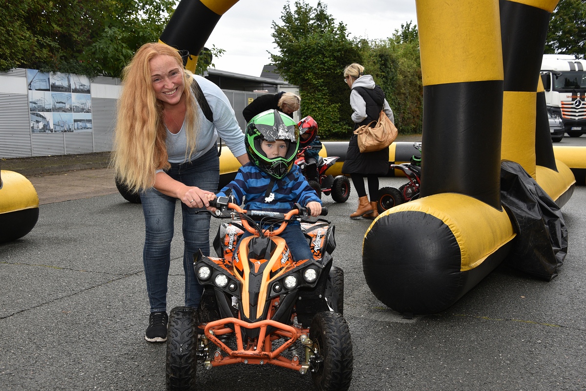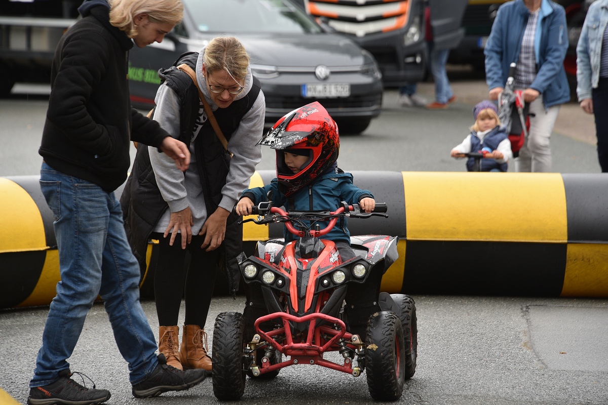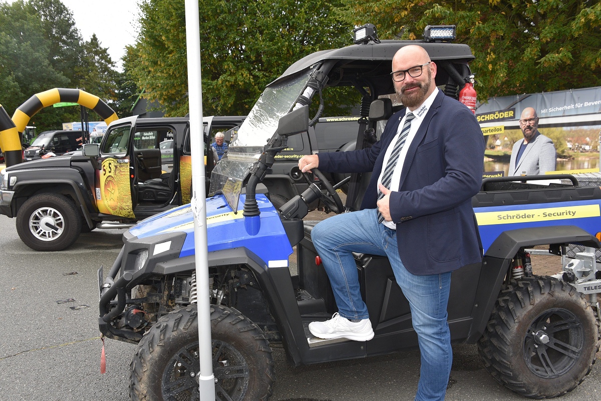 Kinder tobten sich auf Hüpfburgen aus, ritten auf Ponys, probierten sich beim Quad-Racing aus oder ließen sich beim Kinderschminken in Tiger und Prinzessinnen verwandeln. Sportlich wurde es an einer Kletterwand, die mutige Besucherinnen und Besucher herausforderte. Ein besonderes Highlight war der Ballon am Kran: Aus 50 Metern Höhe eröffnete sich ein spektakulärer Rundumblick über das gesamte Veranstaltungsgelände. Von oben konnte man fast ganz Beverungen sehen. „Einfach beeindruckend“, schwärmte die 17-jährige Sophie aus Höxter. Auch Technikfreunde kamen auf ihre Kosten: Die Oldtimerfreunde Brakel stellten ihre historischen Fahrzeuge zur Schau, während der Modellbauclub Bad Driburg eine Miniatur-Baustelle aufgebaut hatte, auf der Jung und Alt ferngesteuerte Bagger und Radlader ausprobieren durften. Entlang der Blankenauer Straße öffneten zudem zahlreiche Firmen ihre Türen und luden zu Betriebsbesichtigungen ein. Das Gesundheitszentrum begeisterte Kinder mit einer Kuscheltierpraxis, während Castellos Puppentheater die kleinen Gäste zum Staunen brachte.