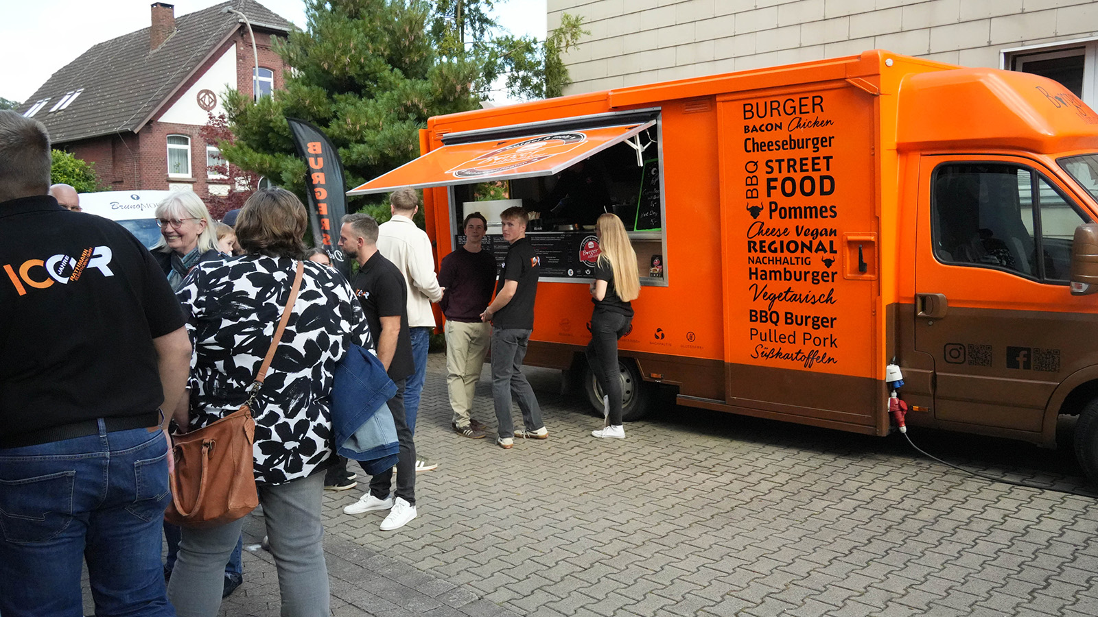 Im Innenhof des Unternehmens erwartete die Gäste eine bunte Mischung aus Genuss, Information und Unterhaltung. Schon am Eingang wurden die Besucherinnen und Besucher mit einem Traubenzucker begrüßt. Wer Lust auf kulinarische Vielfalt hatte, wurde nicht enttäuscht: Ob Eis von Eiswagen Bruno, herzhafte Burger von der Burgermanufaktur, aromatischer Kaffee vom Salut Le Café Bistro, deftige Pommes und Bratwurst von Bauer Loges oder süße Crêpes – für jeden Geschmack war gesorgt. Für Erfrischung standen zudem ein Getränkewagen und eine Cocktailbar bereit, die den Sommertag perfekt abrundeten.