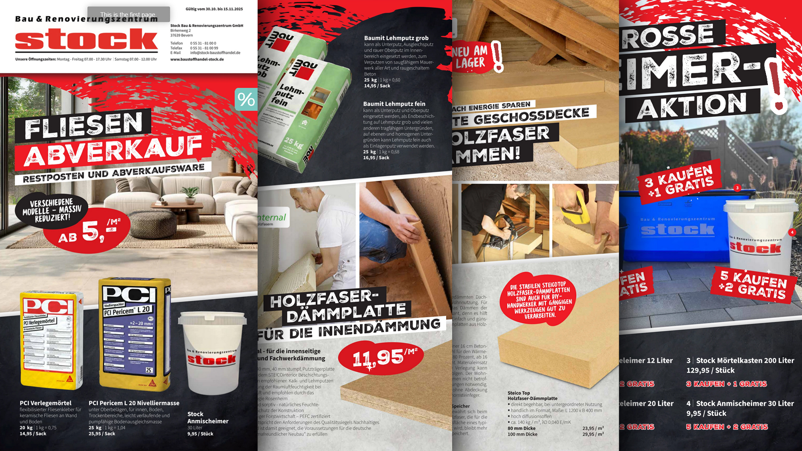 Bevern. Wer aktuell plant, zu renovieren oder zu bauen, sollte jetzt genau hinschauen: Das Bau- und Renovierungszentrum Stock in Bevern hat noch bis zum 15. November 2025 attraktive Aktionen – den großen Fliesen-Abverkauf und die beliebte Eimeraktion.